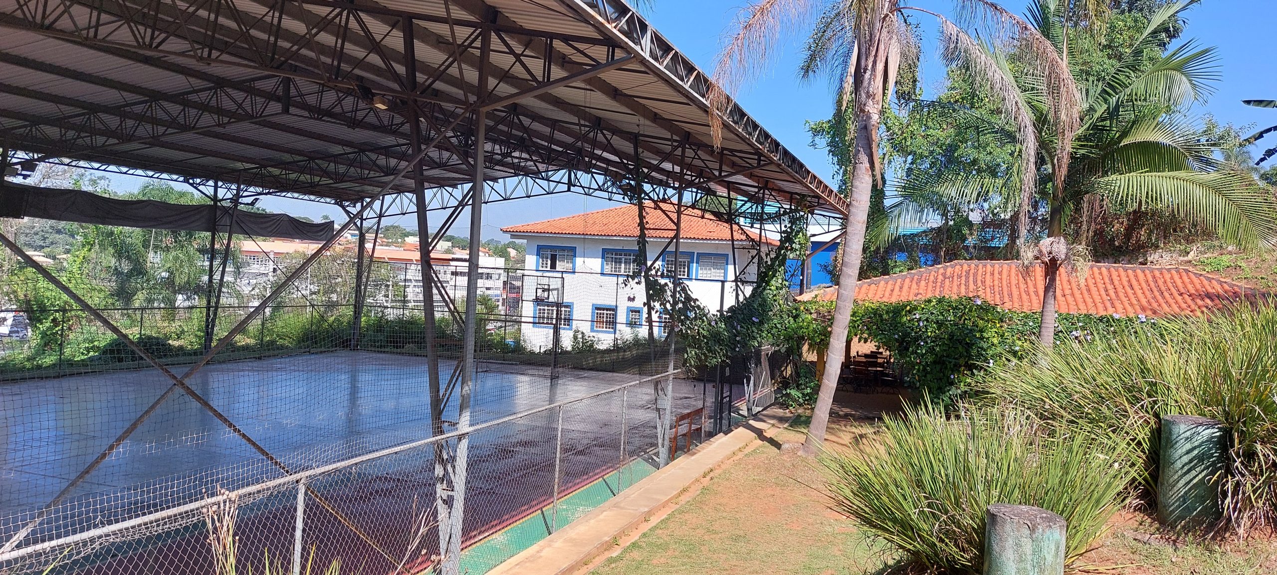 Quadra poliesportiva com área Gourmet para Churrasco com equipamentos e mesas. Nossa estrutura também tem estacionamento que poderá ser locado de acordo com o seu evento.